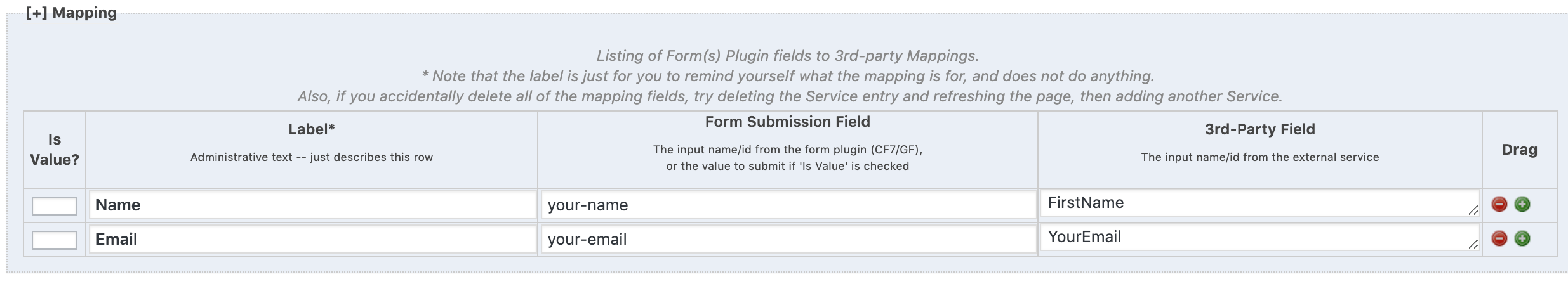 - Label: Ésta deberá ser exactamente igual que la etiqueta de tu formulario en CF7.